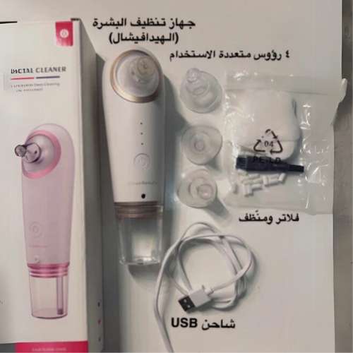 يعمل الجهاز على تقشير الوجة بدون الم وازالة الشوائب وبقايا المكياج والرؤوس السوداء