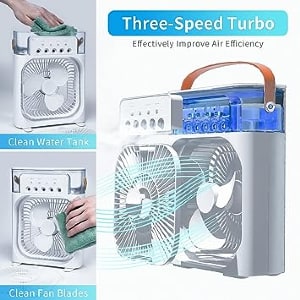 - الأفضل هو إضافة الماء المثلج لجعله مكيف هواء صغير، مما يمنحك هواءً باردًا رطبًا ومنعشًا.