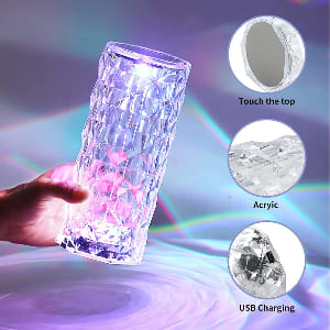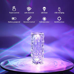 مصنوعة من مواد أكريليك فاخرة، متينة ورائعة. على شكل ماسة على شكل كريستالية 4 ألوان إضاءة لخلق