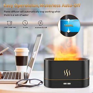 جهاز ترطيب رذاذ اللهب من أليسا محاكاة للهب، 2 إضاءة ليلية، هادئة وهادئة للسطح المكتبي ومعطر