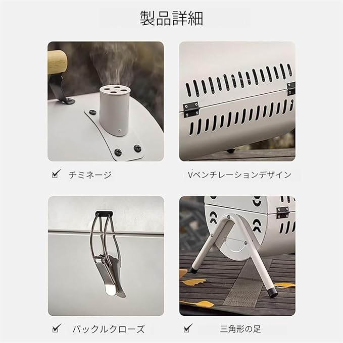 - تصميم بدون دخان يمنع انبعاث الدخان عند الاستخدام، مناسب للاستخدام في الهواء الطلق
